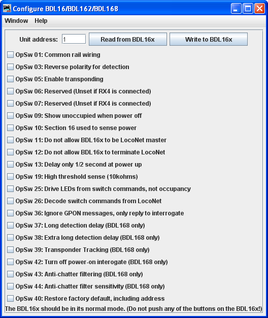 Type the address of a DS64 board in the text field and click . The tool will read back the current state of the various options, and set the check boxes to correspond to their current values.